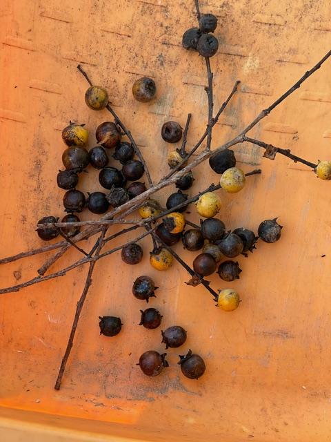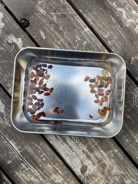 庭にある15mほどの黒実柿がポタポタ落ち始めたので拾い集め潰し種を採りました♪10粒くらいは採り蒔きをして